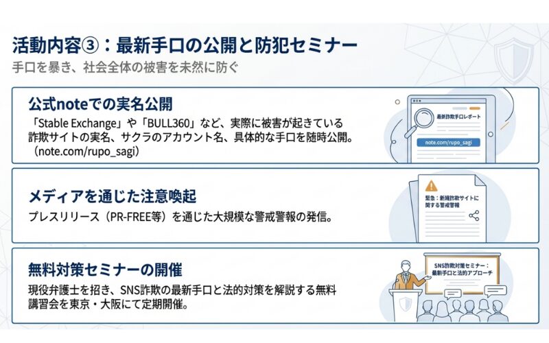 法的アドバイスや二次被害防止の啓発を通じて、悩みを抱える人々を支援する活動を強化しています。